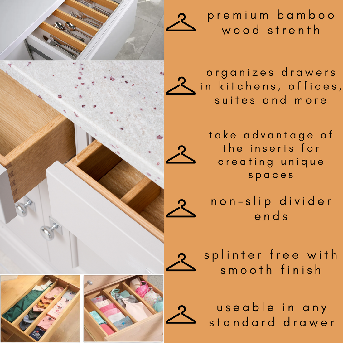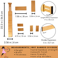 Bamboo Drawer Dividers, Natural - Set of 4 with 6 Dividers