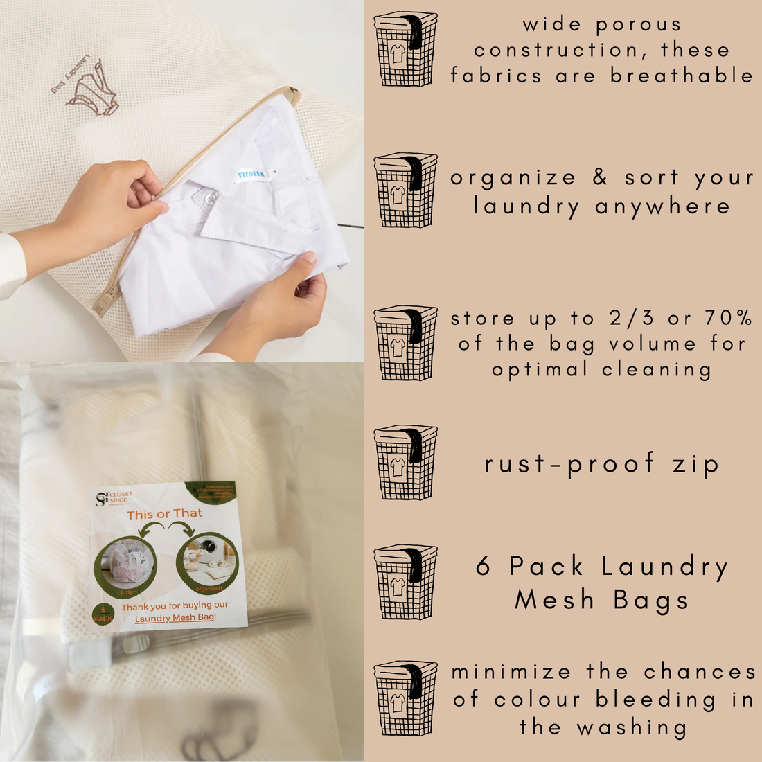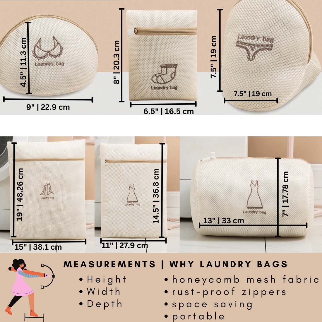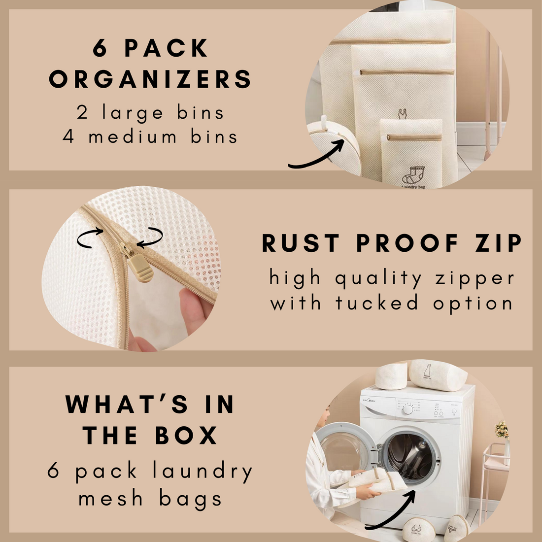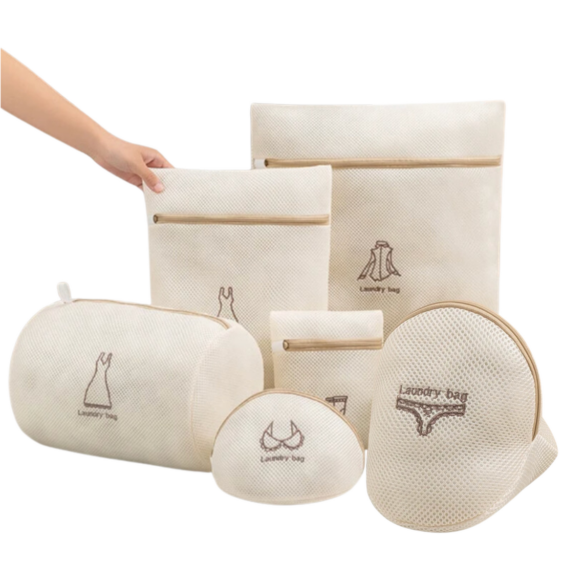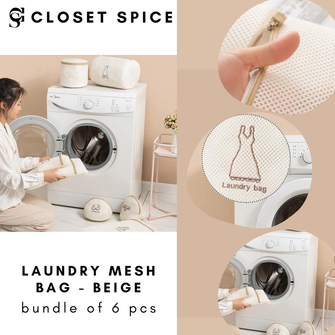 Laundry Mesh Bag Bundle, Beige - Set of 6