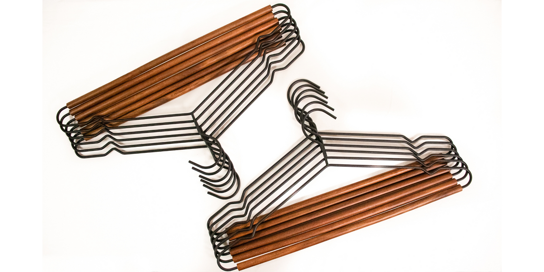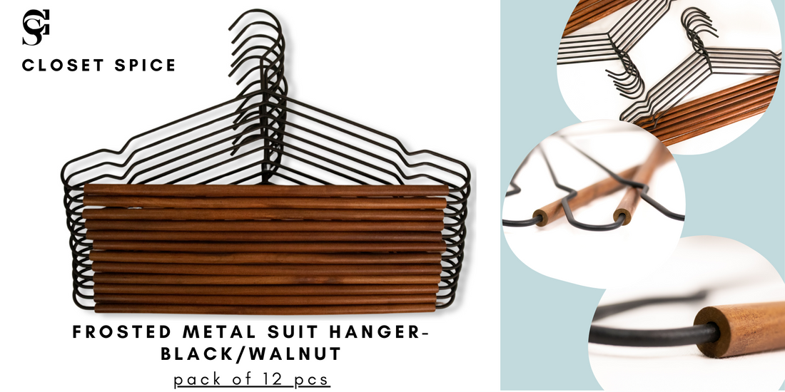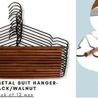 Frosted Metal Suit Hanger - Set of 12 (Black/Walnut) | Wood Hangers, Chrome Hangers, Cedar Balls and Rings, Coat Racks, Kids Wood Hangers, Velvet Hangers