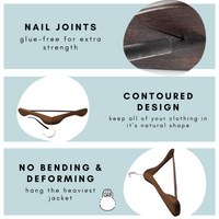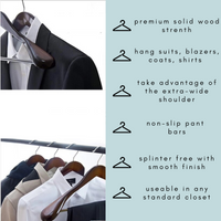 Looking for the ultimate wooden suit hangers? Well, look no far! These Closet Spice Extra-Wide Shoulder Suit Hangers will protect your coat, suit, and jackets from any shoulder bumps or any creases by hanging your suit.