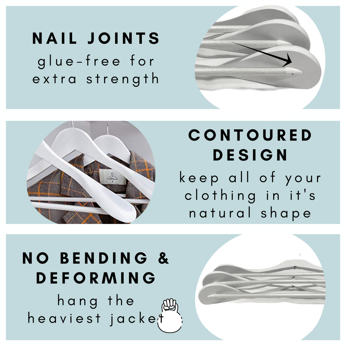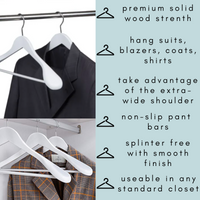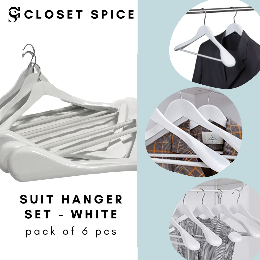 Looking for the ultimate wooden suit hangers? Well, look no far! These Closet Spice Extra-Wide Shoulder Suit Hangers will protect your coat, suit, and jackets from any shoulder bumps or any creases by hanging your suit.