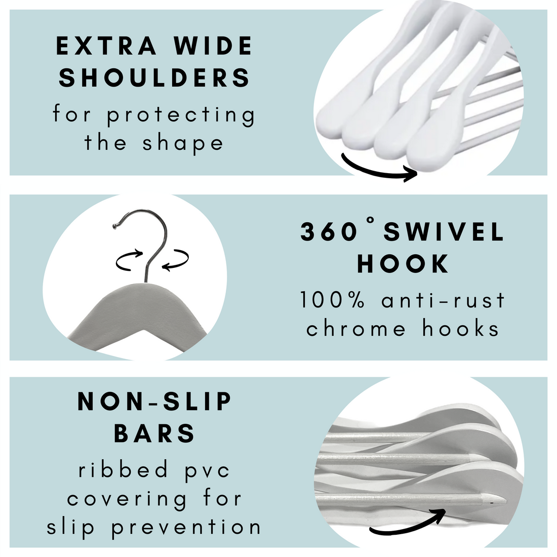 Solid Wood Extra-Wide Shoulder Coat Hangers - Set of 6 (White)